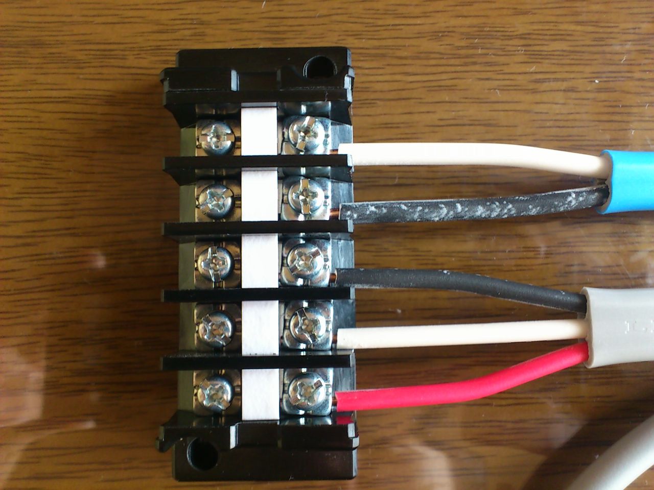 3芯のケーブルを端子台に差し込む場合、真ん中の線を微妙に短くしておくと全ての線が奥まで届くというのに気づきました。